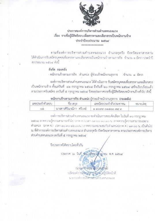 ประกาศรายชื่อผู้มีสิทธิสอบเพื่อสรรหาและเลือกสรรเป็นพนักงานจ้าง ประจำปีงบประมาณ 2564